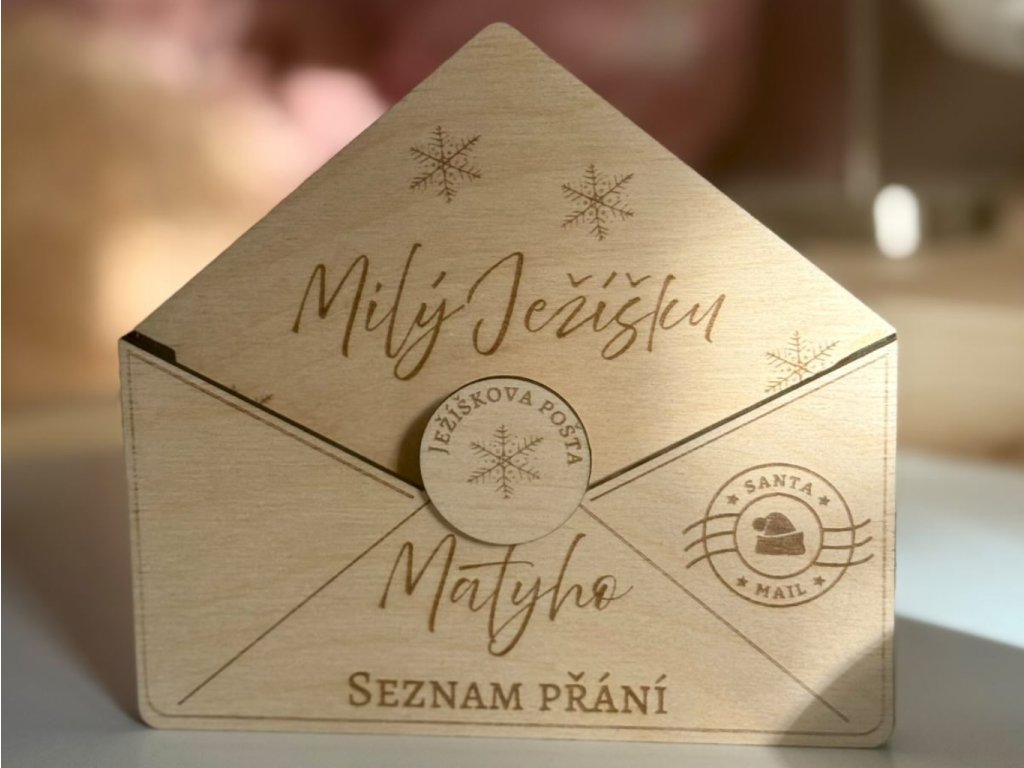 Každý dopis je pečlivě vyroben z 3mm bukové překližky, která mu dodává přírodní vzhled i dlouhou životnost. Stačí ho ozdobit, doplnit o dětský dopis a položit pod stromeček nebo pověsit jako vánoční dekoraci.