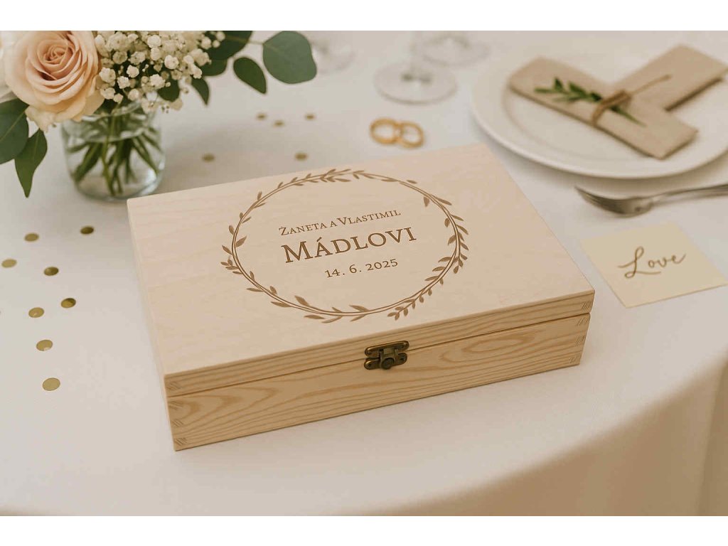 Hledáte jedinečný doplněk na vaši svatbu nebo originální obal na svatební dar? Naše svatební dřevěná krabička je ideální volbou pro všechny, kdo chtějí potěšit novomanžele krásným a trvanlivým dárkem.
