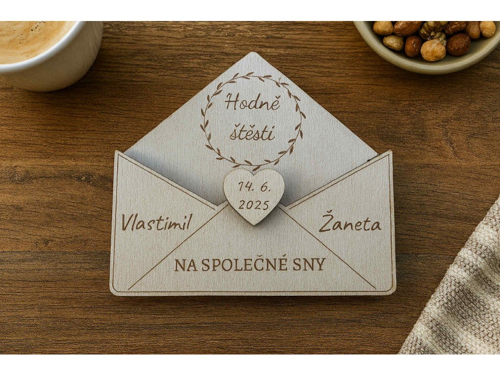 Tento personalizovaný doplněk je nejen krásným a originálním dárkem, ale také stylovou památkou na výjimečný den. Perfektní volba pro ty, kdo hledají něco víc než jen klasickou papírovou obálku.