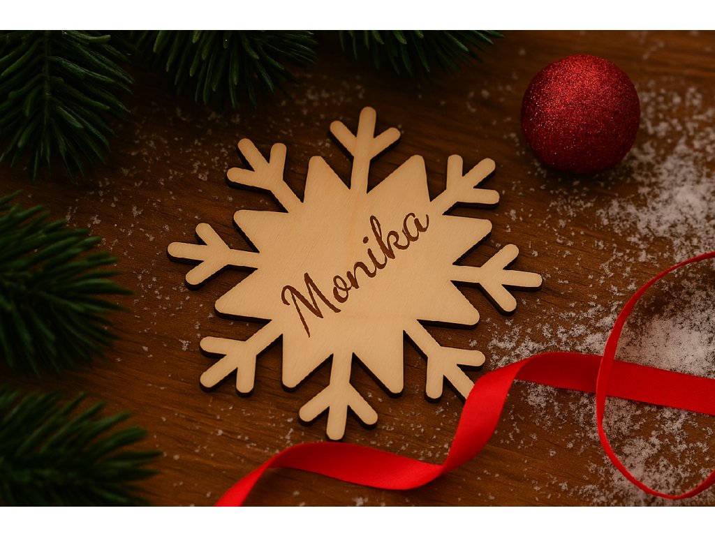 Vytvořte si Vánoce plné kouzla a osobního doteku s naší dřevěnou vánoční vločkou se jménem.