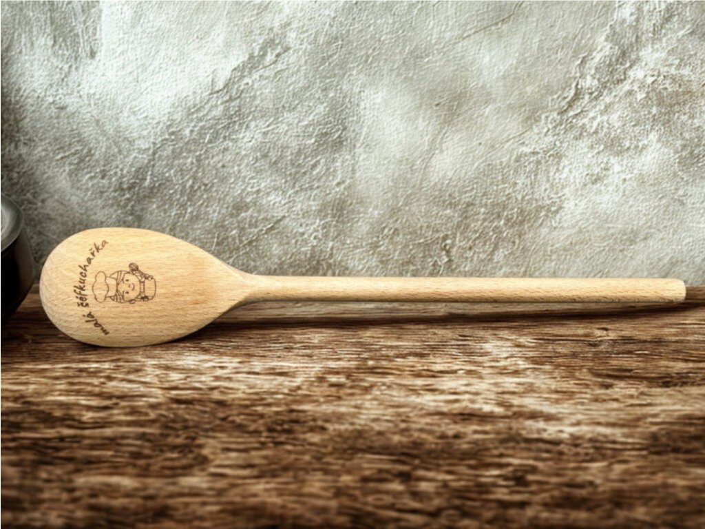Podpořte radost z vaření už od mala. Naše dětská dřevěná vařečka z kvalitního bukového dřeva je skvělým pomocníkem pro malé kuchaře i kuchařky. Elegantní gravírování „Malý šéfkuchař / Malá šéfkuchařka“ doplňuje roztomilá postavička chlapečka nebo holčičky, která dodá vařečce osobitý kouzelný detail.
